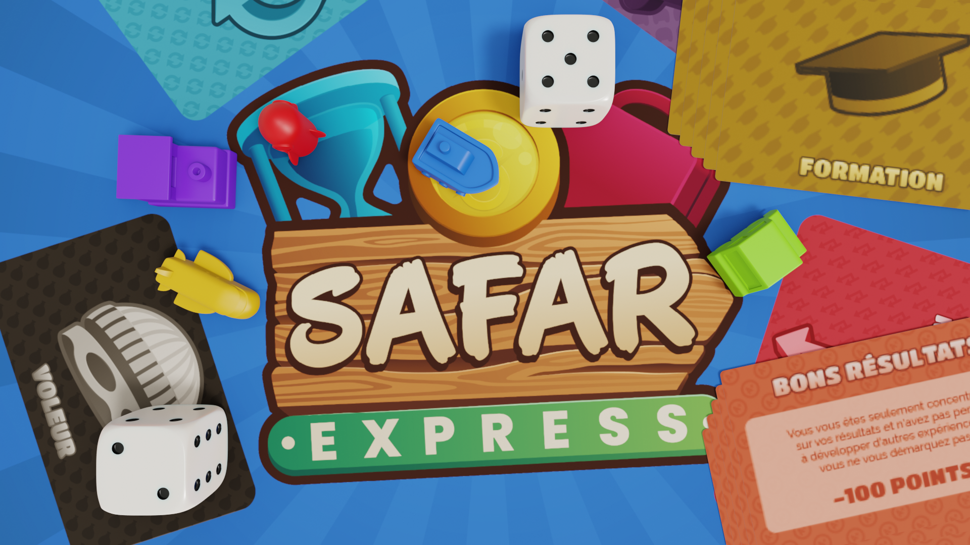 Safar Express est un jeu de société où les joueurs explorent diverses voies vers le succès, en prenant des décisions stratégiques et en naviguant à travers des stages, des projets associatifs, et des réseaux pour façonner leur avenir académique et professionnel. Chaque choix compte dans cette mission personnalisée vers la réussite.